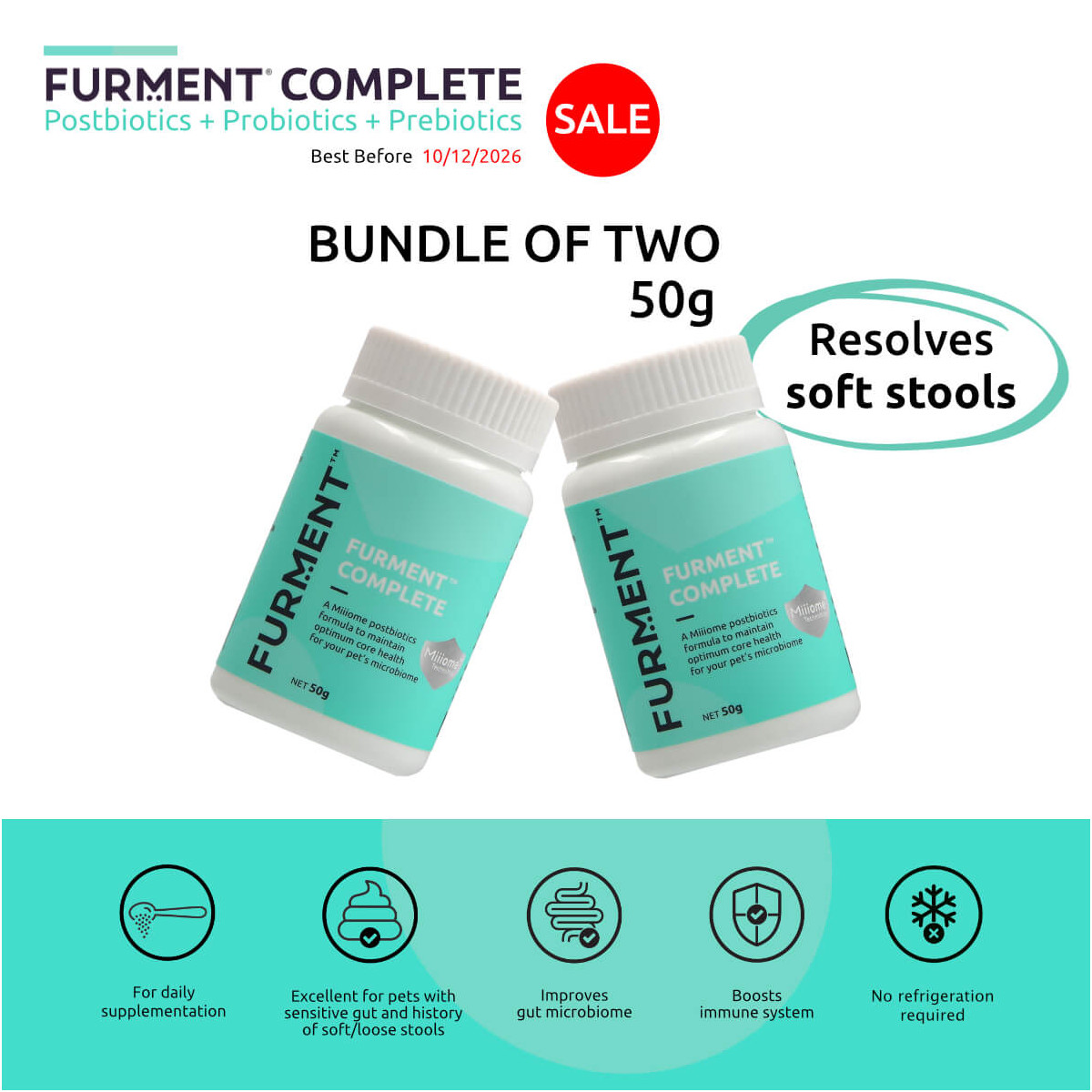 A comprehensive microbiome formula that contains postbiotics, probiotics, and prebiotics, FURMENT COMPLETE is an ideal for supplementation into daily meals. The formula helps to: